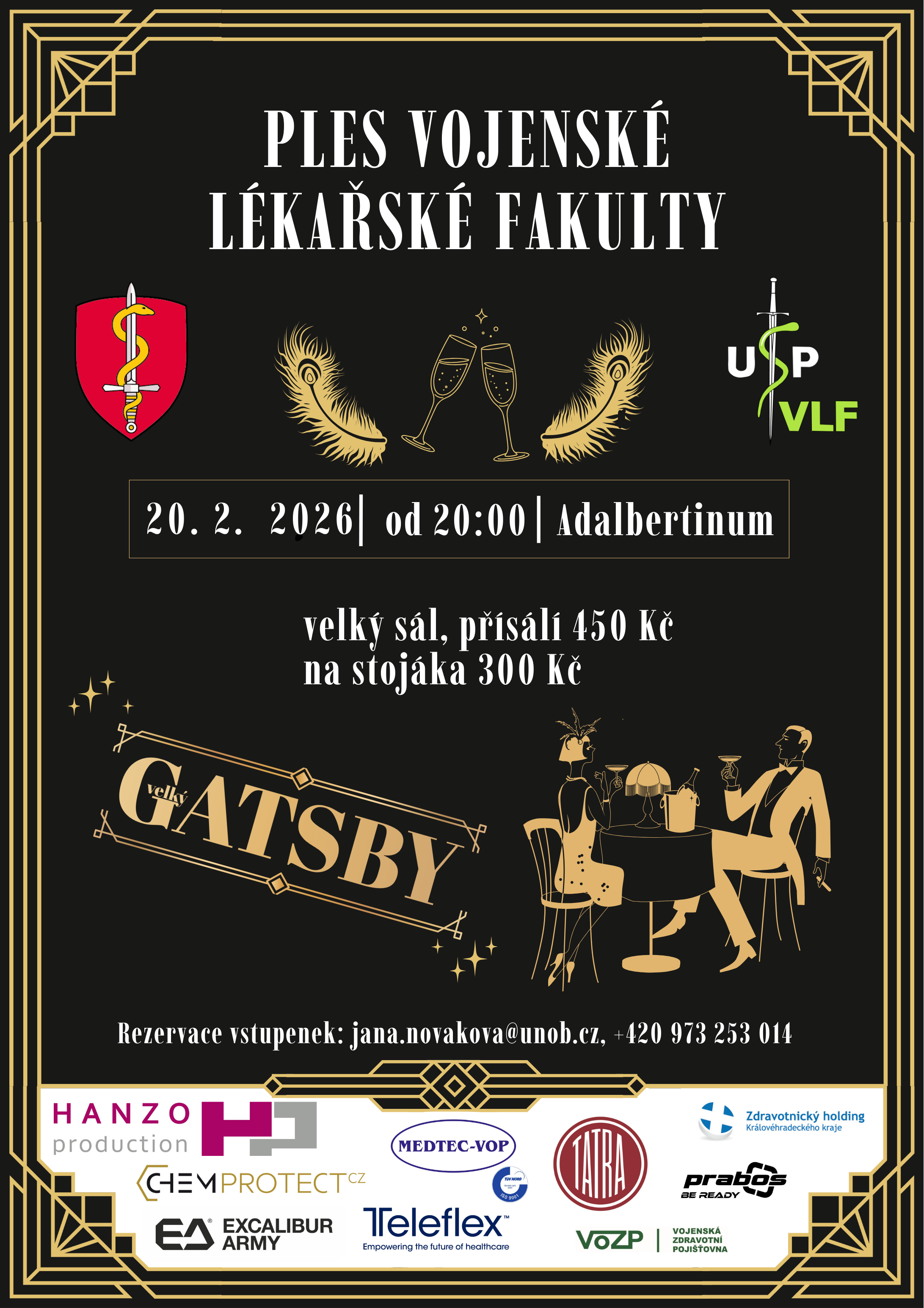 Ples Vojenské lékařské fakulty Univerzity obrany je ideální příležitostí, jak si užít slavnostní večer mimo každodenní studijní režim, potkat spolužáky i pedagogy v neformálnější atmosféře a protančit noc ve stylu Velkého Gatsbyho. Neváhejte a zajistěte si své místo včas. Ples Vojenské lékařské fakulty Univerzity obrany slibuje výjimečný večer plný elegance, hudby a nezapomenutelných zážitků. Oblékněte se do stylu Velkého Gatsbyho a přijďte si užít noc, na kterou se bude dlouho vzpomínat.